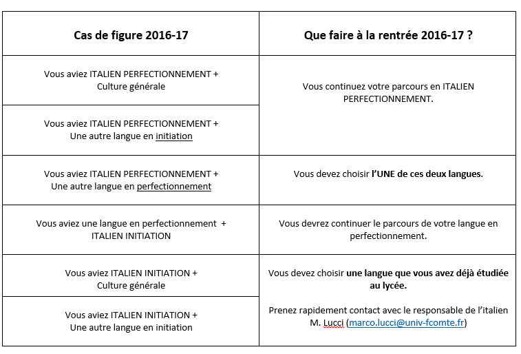 Vous pouvez choisir d'étudier l'italien si vous l'avez déjà étudiée au lycée (LV1, LV2 ou LV3).Vous serez alors inscrits dans le parcour PERFECTIONNEMENT géré par le département Polyglotte.